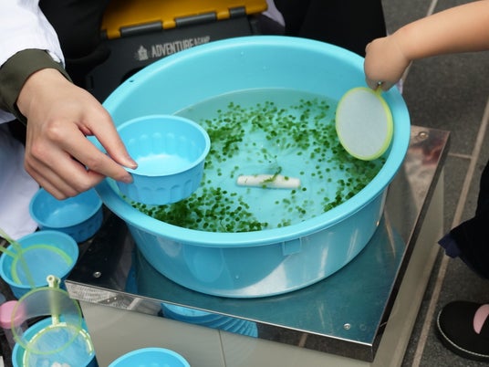 金魚すくいならぬ「ユーグレナすくい」や、顕微鏡でユーグレナを観察できるコーナーを研究者がご案内!