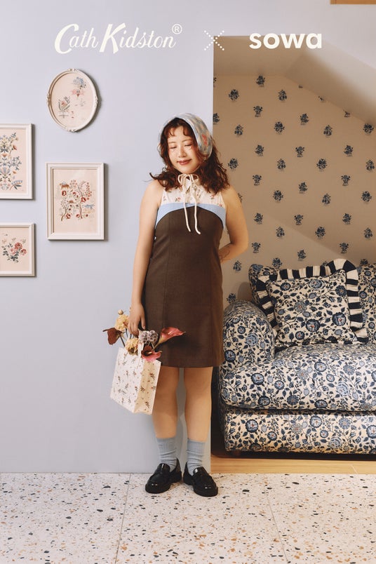 さらに、11月22日(土)よりファッションアイコンとして親しまれているsowaさんとのコラボレーションアイテムを、Cath Kidston表参道店で先行販売、12月1日(月)より全国のCath Kidston直営店と公式オンラインストアにて発売いたします。 Cath Kidstonの世界観の中にsowaさんらしさが散りばめられたワンピースやフーディ、イヤーマフラーなど5つのアイテムに加え、読書が大好きなsowaさんにちなみ、10,000円(税込)以上お買い上げのお客様にバッグと同生地のブックカバーをプレゼント。※数量限定、なくなり次第終了