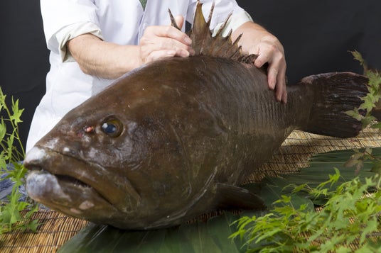 群れを作らず岩穴に単独で住み着き夜間に行動するため「夜の帝王」と呼ばれるクエ。成長すると全長1m、体重80kg以上に達し生まれた時はすべて雌で成長すると雄になるという「雌性先熟(しせいせんじゅく)」の珍しい魚です。漁獲量が極端に少なく、2~3kgに育つまでに5年の歳月を要すると言われています。その希少価値と美味さから値段はフグの倍ほど、年末になればゆうに1kgあたり1万円を超える最高級魚です。クエの旬は秋から冬。海水の温度が下がるにつれ、脂ののりが格段に増し旬を迎えます。その姿から想像のつかない旨みを持ち、脂ののった上品な味わいは絶品。クエの骨のまわりと身・皮の間には、トロトロにおいしいコラーゲンたっぷりのトロトロに美味しいゼラチン質があります。お肌の乾燥が気になる時期に、クエを食べてつややかなお肌に…と、人気です。