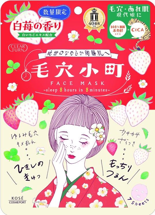 コーセーコスメポート株式会社(本社:東京都中央区、代表取締役社長:小林 孝雄)は、スキンケアブランド『クリアターン』において、人気イラストレーターyasunaさんとコラボレーションした、「毛穴小町」シリーズから、白いちごエキス※1を配合した「毛穴小町 白苺香るマスク」(1品目1品種、ノープリントプライス)を2025年11月21日に、全国の量販店・ドラッグストアを中心に順次発売します。