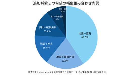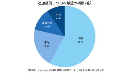 Mt.flowers株式会社(本社:東京都江東区)が運営する火災保険一括見積もりサービス「wismoney(ウィズマネ)」は、2024年10月~2025年9月に寄せられた見積もりデータをもとに、「地震」「水災」「家財」「破損汚損事故補償」といった追加補償の希望状況を分析しました。