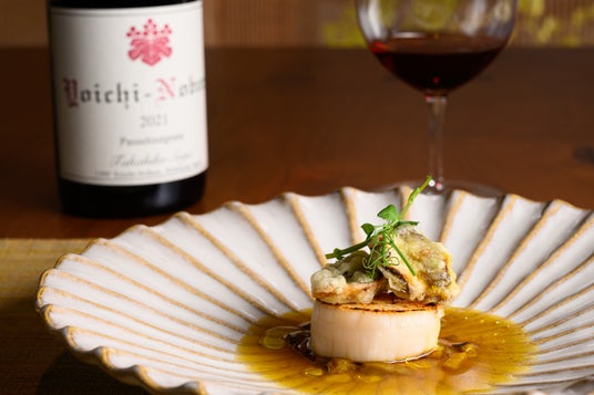 隣町、余市のドメーヌ・タカヒコの銘柄ワインをコース中に1杯盛り込んだ限定ペアリングもご用意しております。収穫の実りを食するローカルガストロノミーをお愉しみ下さい。