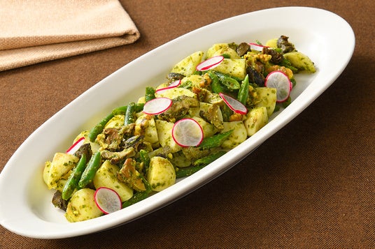 鯨波産サザエのオイル漬けとじゃがいものジェノバ風
