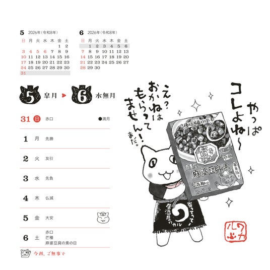 【今年もすべて描き下ろし!】 ともに生きよう…! 気になる中身をチラっとお見せします! 『夜廻り猫2026 卓上週めくりカレンダー』本日10月23日(木)発売