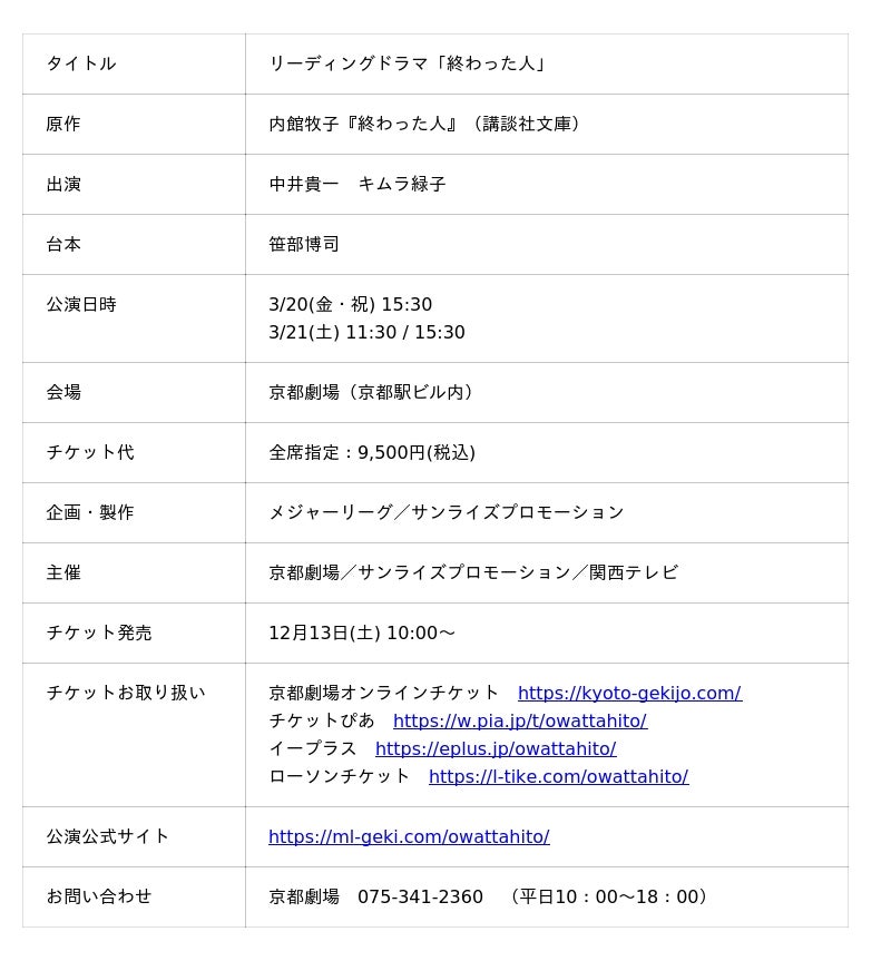 リーディングドラマ『終わった人』開催について