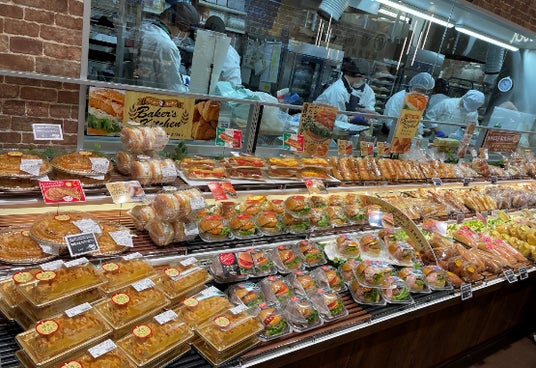 店内で焼きあげるベーカリーを導入し、手伸ばしピザなど焼き立てならではの美味しさと品揃えの豊富さが自慢です。また調理する様子を目の前で楽しんでいただける鉄板亭やだし巻亭など、ライブ感を演出します。他にもバラエティに富んだお弁当など、朝食から昼食、そして夕食まで毎日の食卓に便利なこだわりの商品を取り揃えます。忙しい平日にできたての商品をそのまま食卓に並べていただくことができるよう、揚げ物や中華惣菜はお仕事帰りの夕方にあわせて調理します。