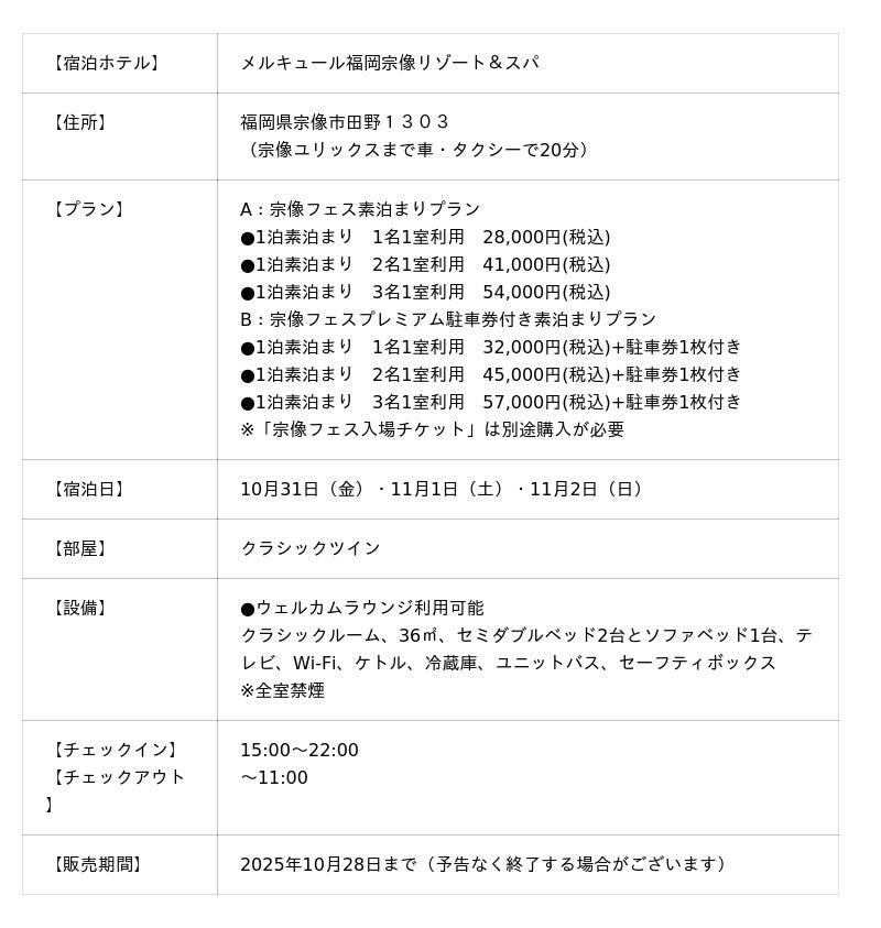 宗像フェス限定宿泊プラン▶