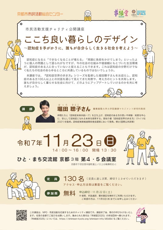 京都市市民活動総合センター(管理・運営:NPO 法人きょうとNPOセンター)では、NPO・市民活動を応援する「チャリティ公開講座」を毎年開催しています。今年は堀田聰子さんをお招きしてお話を伺います。