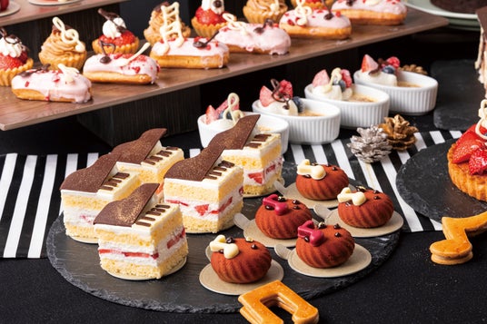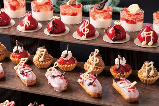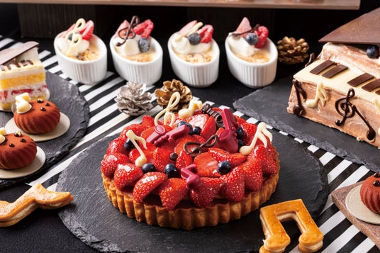 本イベントは、芸術の秋にふさわしく今年で3回目を迎えます。ピアノをイメージしたショートケーキや、音符モチーフのラズベリームースや苺エクレアなど、音楽をテーマとしたスイーツの数々がブッフェ台を彩ります。さらにゲストの目の前で仕上げる「絞りたてモンブラン~和栗~」も登場し、ライブ感あふれるひとときをお楽しみいただけます。
