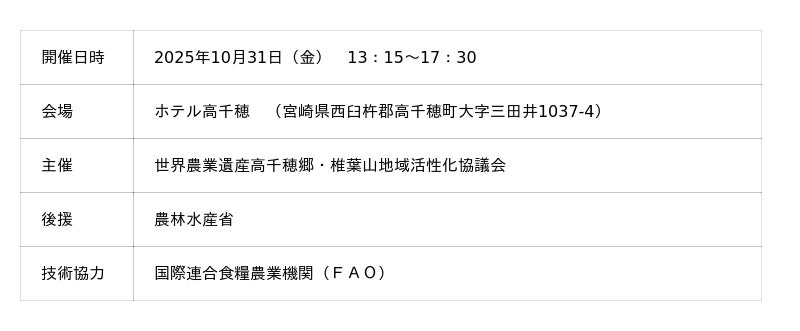 【宮崎県】高千穂郷・椎葉山地域世界農業遺産認定から10年。記念シンポジウムを開催します!!