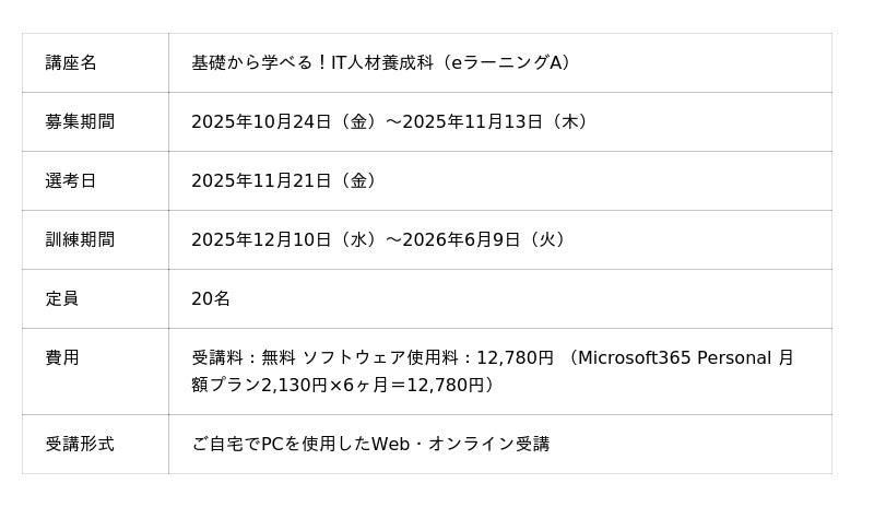 【訓練内容詳細】 http://job-training.jp/wp-content/uploads/2025/10/IT_12_hokkaido.pdf