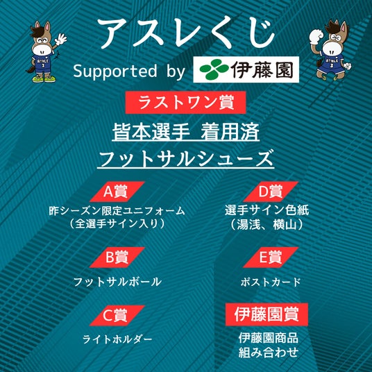 立川アスレティックFC(本拠地:東京都立川市・代表理事:皆本晃)は、「スポーツで、人生に大きな夢と、毎日に小さな彩りを」を理念に掲げ立川市を拠点に活動するFリーグ所属のフットサルクラブです。11月1日(土)に開催されるメットライフ生命Fリーグ2025−26 Div.1 第15節 ペスカドーラ町田戦において、株式会社伊藤園様をマッチデースポンサーに「伊藤園お~いお茶 DAY」を開催することになりましたのでお知らせいたします。