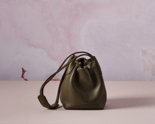 このドローストリング・バケットバッグは、継ぎ目のないボディとハンドルが特徴で、かつてカシミヤの束を包むために用いられていた紐やストラップへのオマージュであるレザースライダーによって、ハンドルを簡単に長いショルダーストラップに変身させることができます。手縫いのハンドルと、独自のジュエリーからインスピレーションを得た、洗練された内側のトグルクロージャーは、《ベイル・バッグ》ファミリー全体のシグネチャー要素です。