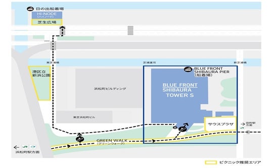 本イベントでは、芝浦ならではの水辺の環境を生かした体験をご用意しております。緑に囲まれた公園や芝生広場、そして心地よい秋の気候の中でピクニックを楽しめるテイクアウトメニューの販売や、ピクニックツールのレンタルサービスもご用意しています。さらに、BLUE FRONT SHIBAURA TOWER S 開業記念イベントでご好評いただきました、地上約140m から東京ベイエリアを一望できる展望テラス「BLUE SKY LOUNGE」も皆さまからのご要望にお応えし、特別に開放いたします。