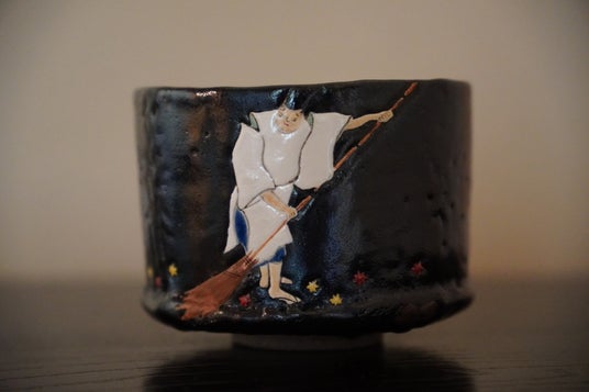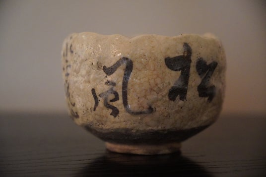 平田精耕 作 茶碗「東西活路通 」天龍寺の第九代管長であった平田精耕老師から賜った特別なお茶碗です。平田老師はドイツ文学を専攻され、ベルリンの壁崩壊の歴史的瞬間に現地を訪れました。その折に持ち帰られた壁の石を焼き付けて作られたこの茶碗には、世界史の転換点の記憶が刻まれています。 さらに、茶碗の内には「東西活路通」という言葉が、老師自らの筆によって記されています。