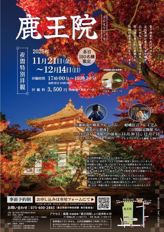 【1日150名限定】京都紅葉隠れスポット 嵐山 鹿王院夜の特別拝観2025~茶道速水流のお抹茶~