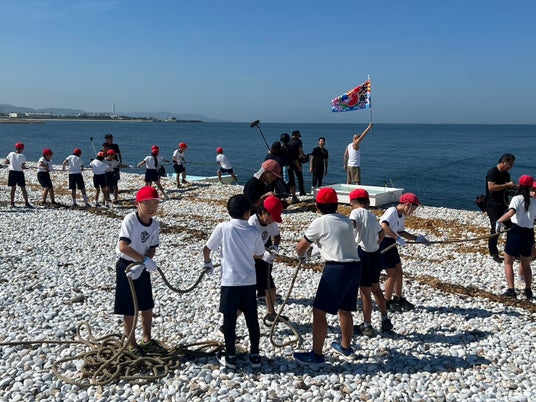 2時間目「海の生き物に触れよう」一致団結して巨大な網を引き上げると…!?