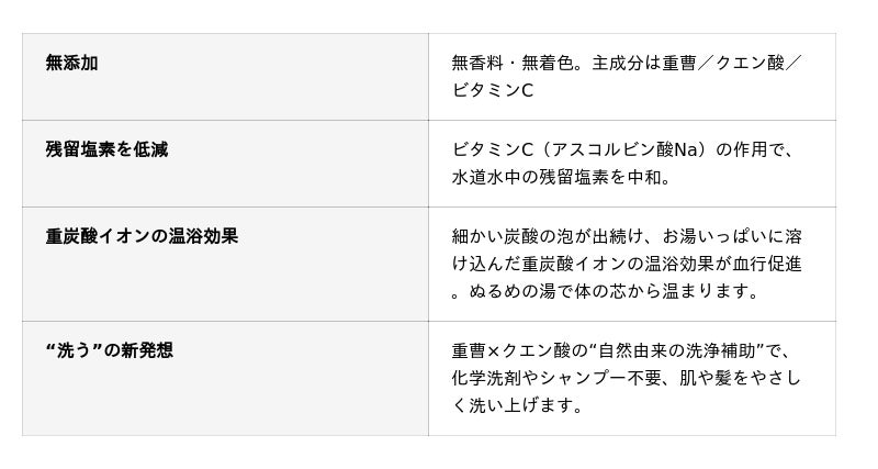 色・香り無添加の純正重炭酸で“ケミカルレス温浴”を。無添加×血流促進×ストレスオフ、初回実質1,975円(/月) から始めるセルフリカバリー定期便