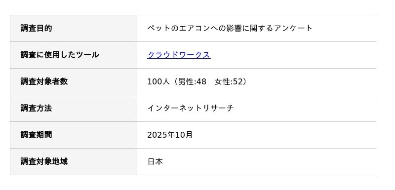 ペットのエアコンへの影響に関するアンケート調査の概要