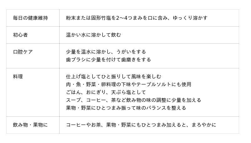 竹塩は竹と松と塩の力が融合することで、独特のまろやかさと深みのある味わいが生まれます。