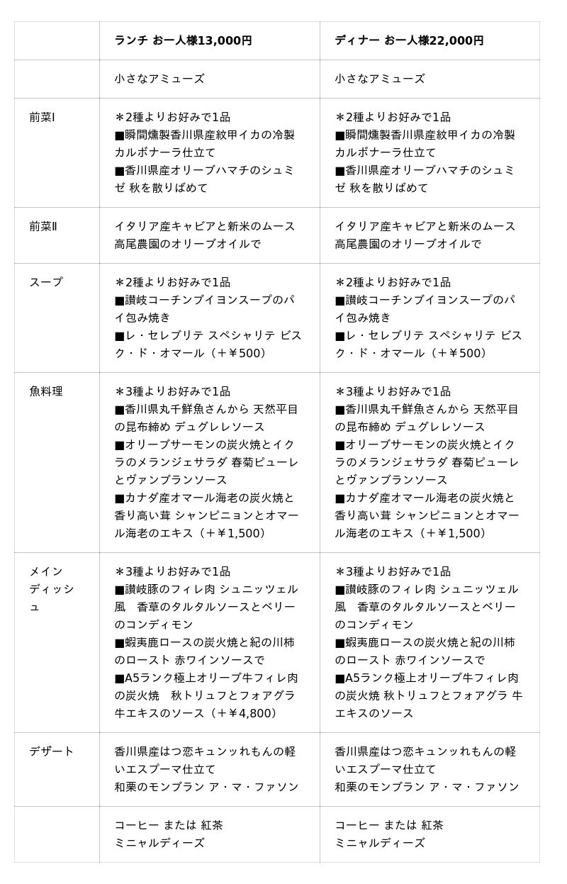 公式サイト: https://www.hno.co.jp/restaurant/plan/fair-kagawa.html