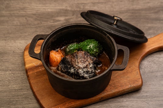 牛ホホ肉の赤ワイン煮込み 1,480円柔らかく煮込んだ牛ホホ肉を赤ワインのコクと香りで仕上げた一品。仕上げにチーズを削ってお召し上がりください。