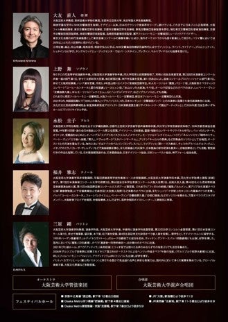 本コンサートは、華々しい出演陣と壮大なプログラムで贈る、大学を代表する特別公演です。本公演の指揮を執るのは、世界的指揮者である大友 直人氏。大友氏のタクトのもと、本学の学生から編成される大阪芸術大学管弦楽団と混声合唱団が一丸となり演奏する、特別な一夜となります。
