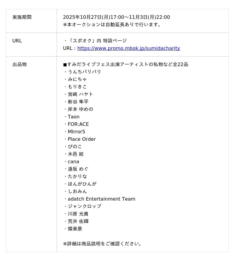【すみだライブチャリティーオークション2025秋 概要】