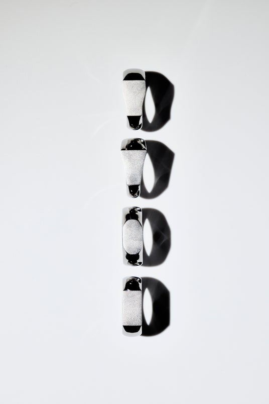 硬く加工が難しいとされるチタンを、1点ずつ丁寧に磨き上げることで、自由な造形と存在感を実現しました。
