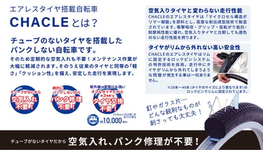 絶対にパンクしない!CHACLEのエアレスタイヤ搭載。