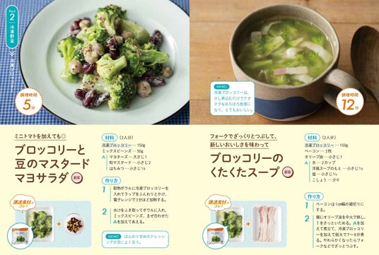 カット野菜や冷凍野菜は、皮むき、種取り、カットなどの下ごしらえが済んでいるので、そのまま使えて調理時間を短縮できます。冷凍野菜は、「ゆでる」「揚げる」など加工済みのものも多いので、さらに時短に。2 食材を無駄なく使える