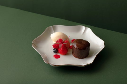 焼きたての濃厚なフォンダンショコラは、甘くなりすぎないよう少しキャラメルを加えた芳醇なカカオが香るチョコレートソースを忍ばせました。自然な甘酸っぱさを感じられるミックスベリーとまろやかなミルクジェラートを絡めてお召し上がりいただくと、ひんやりとした冷たい食感と温かな食感を同時に味わえる口福なひとときをお楽しみいただけます。