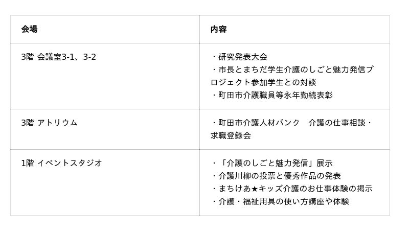 医療、介護、福祉に携わる職員や地域活動に携わる市民等による日頃の実践等についての研究発表や、市民や介護サービス利用者等から募集した介護川柳の掲示、介護施設での就労希望者を対象とした就労相談会等を行います。「アクティブ福祉in町田`25」 会場・内容