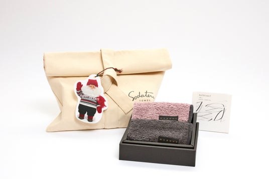 育てるタオルの人気シリーズに、ナチュラルなキャンバス生地のホリデーバッグと、 天然ミネラル成分を豊富に含んだヒマラヤ岩塩を使用したバスソルトをセットにしました。