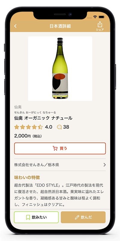 全国1,300軒を超える酒蔵や数万を超える日本酒情報を網羅し、酒蔵と消費者をつなぐ日本酒専門アプリです。飲んだ日本酒の記録を簡単につけられるほか、"酒蔵直伝"のおすすめの飲み方やフードペアリング情報をはじめ、酒蔵がおすすめする全国各地の飲食店や宿泊施設まで充実したコンテンツを発信しています。 さらに、日本酒オンラインショップ「Sakenomy Shop」とも連動し、お気に入りの日本酒をその場で購入も可能です。