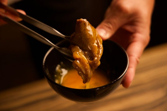 この肉のためにだけ作られた特製の割り下は、鰹と昆布の上品なだしに、ジャンボ秘伝のタレを合わせた唯一無二の味わい。さっと炙ったお肉を割り下に絡め、溶き卵と共にお召し上がりください。口にした瞬間、至福の旨味が訪れます。