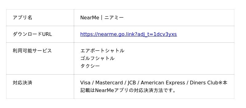 「NearMe」は、独自のAIを活用した最適なルーティングで、出発地から目的地までの移動をドアツードアで結ぶタクシーのシェアサービスです。その中でも、空港とその周辺の都市部を結ぶ空港送迎型の『エアポートシャトル』は、2019年8月のサービス開始から、 多くの方にご利用いただき、累計予約人数125万人※1を達成しました。現在は、全国16の空港※2(羽田空港、成田空港、伊丹空港、関西空港、新千歳空港、中部国際空港、福岡空港、那覇空港、旭川空港、帯広空港、青森空港、仙台空港、静岡空港、南紀白浜空港、徳島空港、北九州空港)と、空港周辺の都市部でご利用いただくことができます。対象エリアであれば、出発地となるご自宅から空港、そして空港から最終目的地まで一気通貫でつながるため、公共交通機関の乗り換えがなくなるなど、ストレスフリーな移動体験を提供することができます。また、貸切送迎サービスや、東京都と千葉県全域のゴルフ場と東京都23区内を結ぶゴルフシャトルなど、シチュエーションに応じて様々な移動のニーズに対応するための各種サービスを展開しています。