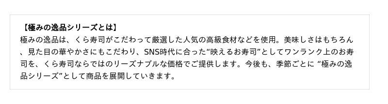 豪華食材のカニとこだわりのサイドメニューとともに、贅沢な時間を是非くら寿司でお過ごしください。