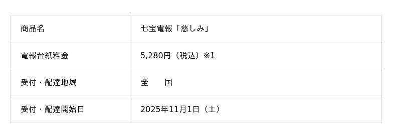 NTT東日本およびNTT西日本(以下、NTT東西)は、新たに弔慰用電報台紙、七宝電報「慈しみ(いつくしみ)」(以下、本商品)を2025年11月1日(土)より全国で販売開始します。