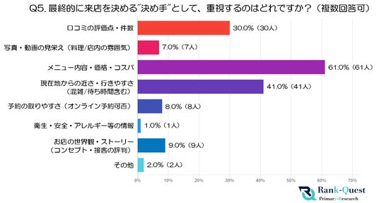 ◆ 調査5: 来店を決める"決め手"として重視していること