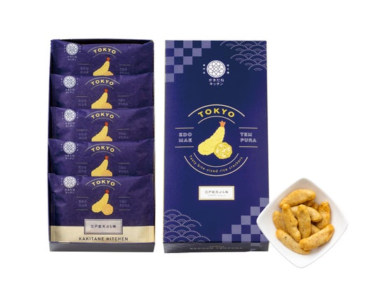 発売から1年、「おうちで食べたい」「気軽にプレゼントしたい」など、たくさんのお客様の声をいただき、新たに『かきたね 江戸前天ぷら味 5袋』をラインナップ。出汁感と海老の風味をUPし、さらに美味しくなって新登場いたします。