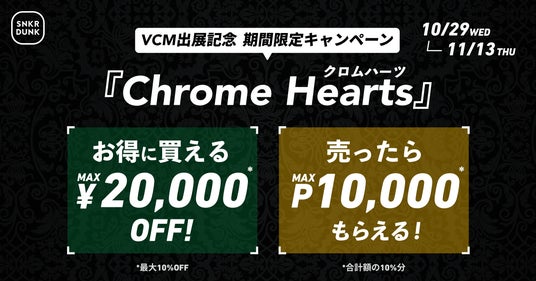 ~スニダンアプリで最速1秒で売れる「クロムハーツ」のアイテムを多数販売。開催にあわせ、「VCM協賛・出展記念!クロムハーツキャンペーン」を開催~