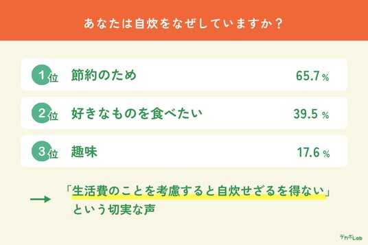 自炊の理由については、「節約したいから」が最も多く、65.7%の回答を集めています。