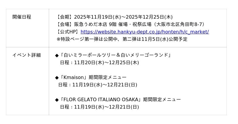 阪急うめだ本店では、2025年11月19日(水)より、9階催場・祝祭広場にて「クリスマスマーケット2025」を開催いたします。