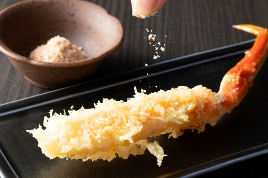 かに塩でお召し上がりいただく天婦羅は、口に入れた瞬間にかにの風味と甘みを感じることができ、食材を一層引き立てます。ザラっとした粒がアクセントにもなり、噛むたびにかにの風味が広がります。