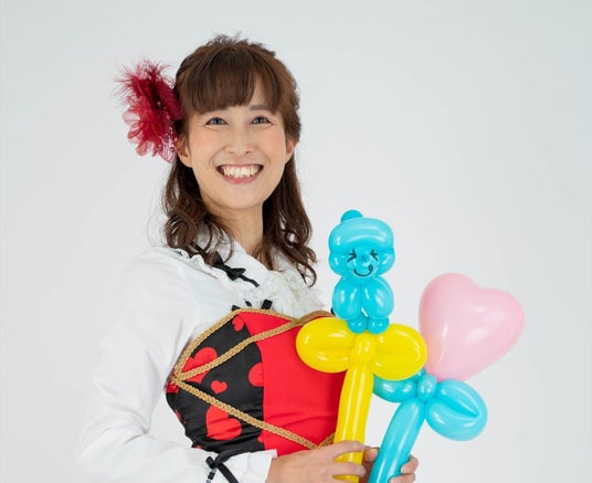 あべよしえによる、色とりどりのバルーンアートをお子様たちへプレゼント。目の前で作られる大きな花や犬などのバルーンで笑顔溢れる空間に。抽選会のアシスタントもつとめます。