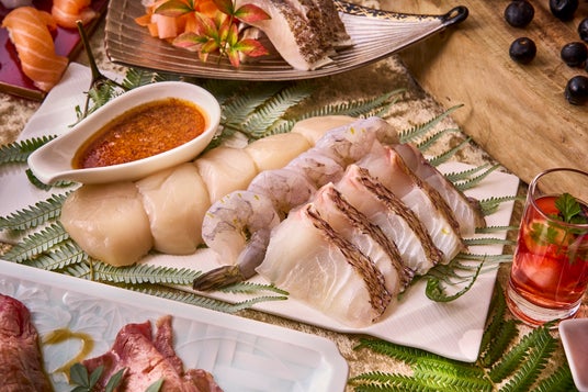 (洋食)海老と鱸のエスカベッシュ 野菜添え/自家製パテ・ド・カンパーニュと冷製鴨のコンフィ/サラダコンポゼ/鶏もも肉のロティとローズマリー香るインカのめざめ/美笑牛のコロッケ/オニオンスープパイ包み焼き/オムライス/都ホテル&リゾーツカレー/牛肉の鉄板焼き/シーフードの鉄板焼き/フォアグラとコンソメ大根の鉄板焼き/骨付き牛もも肉のロースト