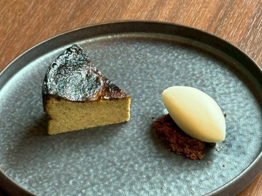 【ほうじ茶のバスク風チーズケーキとグリークヨーグルトのソルベ】