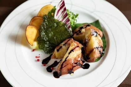 サツマイモとスペイン産生ハムのインヴォルティーニバルサミコソース