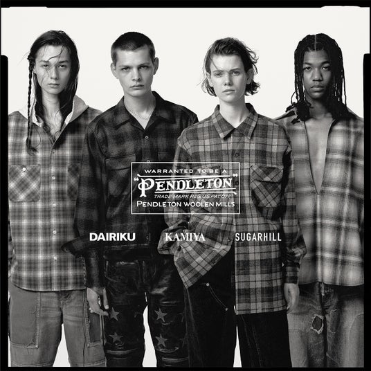 アメリカを代表する老舗テキスタイルメーカー、PENDLETON。これまで数多くのコラボレーションを生み出してきたのはご存知の通りだが、ユース界隈で人気のブランドとの取組みはほぼ皆無。そこで始動をさせたのが実力派若手ブランドとのマッチアッププロジェクト。声をかけたのはDAIRIKU、KAMIYA、SUGARHILLの3ブランド。